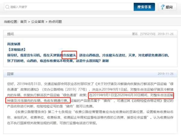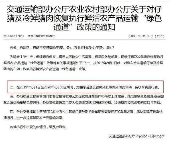关于冷冻猪肉是否能拉,根据交通运输部发布的政策通知,在2020年6月30日之后,是不再免费了。