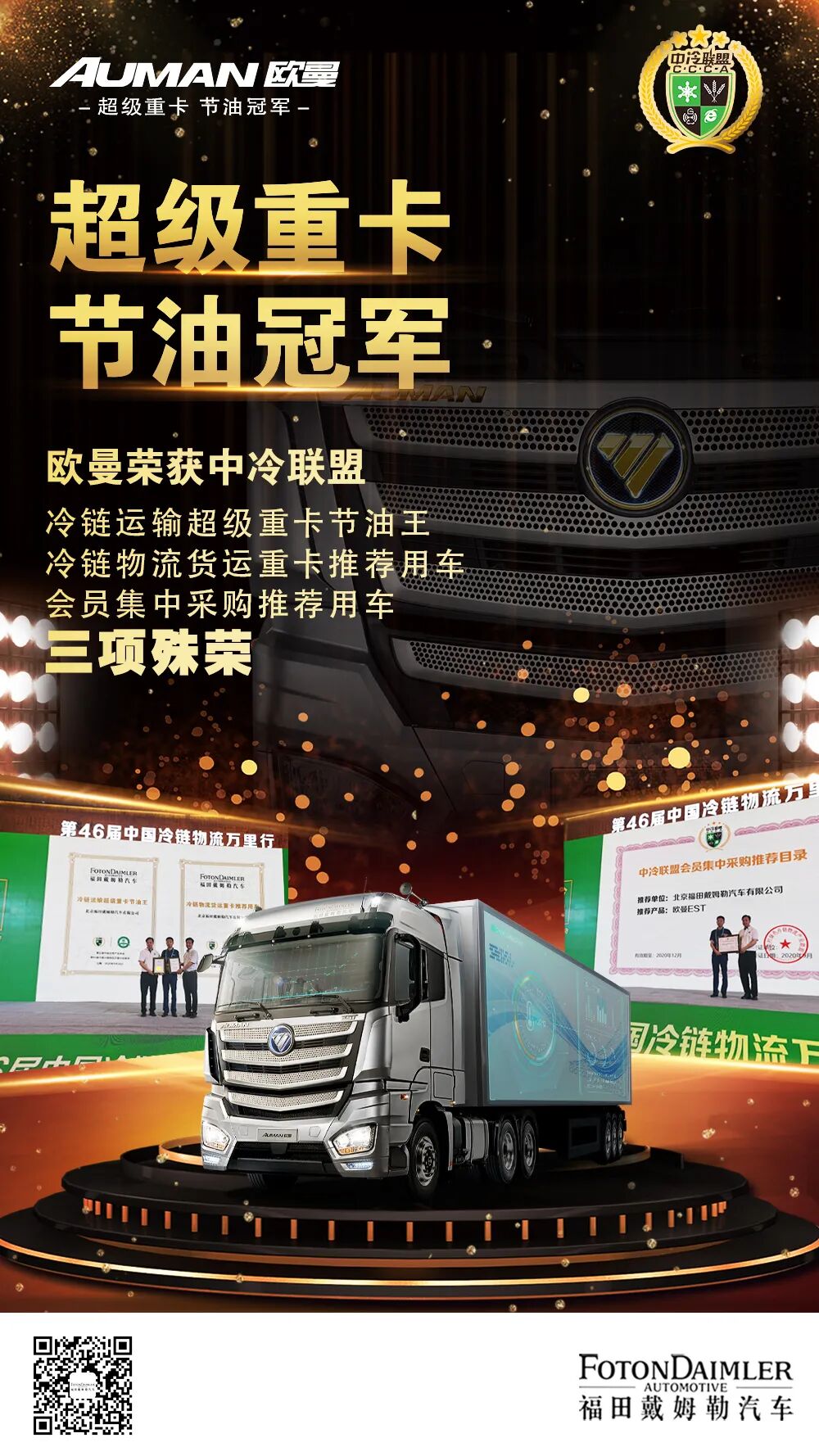 9月17日,由中冷联盟、中冷协冷链物流分会主办的第46届中国冷链物流万里行的活动在南京举行,福田戴姆勒汽车携欧曼自动挡重卡亮相大会,同时获得“冷链运输超级重卡节油王”、“冷链物流货运重卡推荐用车”等多项称号,凭借更节油高效、安全可靠、高出勤、低货损、更保值等产品优势赢得行业及用户的一致青睐。 第46届中国冷链物流万里行活动顺利举行 行业难点频现 亟待领先技术解决行业痛点 随着5G、万物互联迅猛发展汇,网购已成为了民众日常生活的重要组成部分,其背后展现出的是惊人的“中国物流速度”。 尽管我国冷链物流进入全面转型升级时代,但目前大部分的生鲜供应依旧处于传统方式,产品流通需要经过农户、产地、采购商、中间商、批发市场等多重环节,流通环节繁琐,冷链损耗率常年居于10%以上,是欧美国家的2-3倍,欧美领先技术有更广阔的应用空间。 伴随着物流运输行业飞速发展,疫情之后的中国物流市场,与冷链发展紧密相扣的食品安全溯源及监督逐步完善,带来物流成本的大量投入。随着看好国内冷链市场的各类企业高歌猛进,数千家中小冷链物流企业面对效率低、成本高等突如其来的生存压力,迫切需要一整套专属冷链物流的解决方案。 如何有效助力中小企业更进一步提升效率,迅速有效地实现冷链经济成为助力经济复苏的关键,并同步解决中小型物流企业运输效益低、企业招人难等的行业痛点,此次大会中,福田戴姆勒汽车携欧曼自动挡冷链之星及冷链物流一体化解决之道共同探讨冷链运输未来发展。 荣获“冷链运输超级重卡节油王”和 “冷链物流货运重卡推荐用车”双项荣誉称号 以智慧冷链解决方案 品尝物美价廉的新鲜 针对行业发展痛点及卡车司机用车需求,福田戴姆勒汽车推出欧曼自动挡冷链之星,以提升运营效率,降低运营成本“一升一降”两大亮点破局发展,深入打造物流场景需求配置,满足客户个性化、多元化的需求,更有力更高效的保障每一家中小企业的快速发展。 欧曼自动挡冷链之星搭载福康X系列发动机+采埃孚智能变速箱组成超级动力链,软硬件高度集成,智能燃油控制,拥有着70%超宽经济油耗区间,传动效率高达99.7%,针对区域路况匹配,采集了中国最全路谱,工况适应性强,百公里可省油3-5L,5年即可省出10万块。 整车采用了轻量化结构优化及新型加强材料,前后少片簧的悬架,更轻更强,轻量化的钢轮辋,有效降低自重1.3吨,在保证合规前提更高装载。冷藏货箱低功耗、制冷快,温度、湿度全程可控,精确值可控在±0.1℃,全程低货损,保证货物在运输过程中新鲜、安全,跑链不“断链”。 为了实现运营成本的有效降低,以安全与智能守护运输全程,绝不放过运送过程中一点运营效率“损耗”。驾驶室实时全程监控厢体内温度,防止司机误操作断冷而损坏货物。并搭载自动挡预见性驾驶技术(PCC)及智能燃油控制等智能配置,监控司机的驾驶行为同时解放每位冷链司机左脚右手,智能技术加持下,运输越开越省油,越开越省力。 欧曼EST入选中冷联盟会员集中采购推荐名录 行稳方能致远 冷链收益以“稳”取胜 欧曼冷链之星“一升一降”之外更能“内外兼修”,整车160万公里无大修,发动机、车桥同步10万公里换油周期,变速器20万公里换油周期,两年不开箱,平均故障间隔里程达5万公里的可靠品质带来高出勤率,确保运输高效率。 同时,根据冷链物流用户关注的服务需求,福田戴姆勒汽车围绕车辆全生命周期提供一体化定制服务产品,确保冷链物流车辆更好的运营状态。最长42个月超长保修,发动机10万公里换机油周期等服务保障,为冷链用户提供车辆专属定制服务保障,确保货物准时到达,量身定制,畅行无忧。 欧曼冷链之星现场展车 据预测,今年冷链市场规模将近4700亿元。万物物联时代不断发展也会助力冷链市场还有更多的潜力等待挖掘。市场规模的不断增长,更需要专业的人、专业的车去做专业的事。 未来,欧曼将从冷链物流企业在上行中遇到的‘时效、安全、售后’等困难点,不断提高配送时效,把利润节省在每一趟物流。