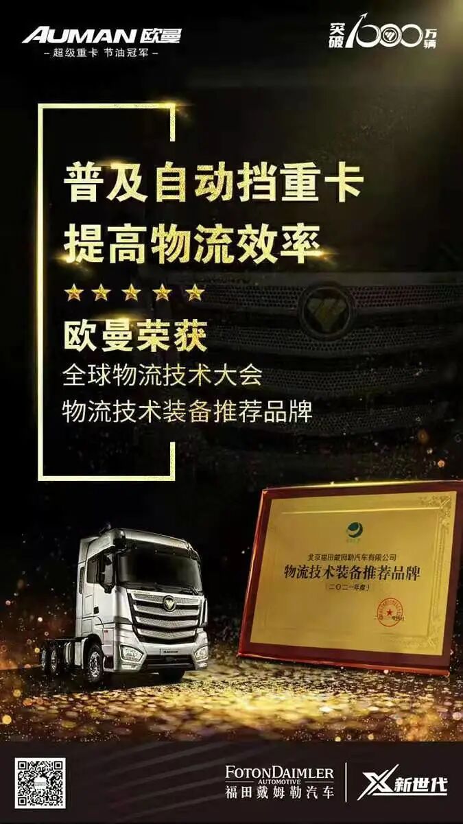 未来已来,科技已至。在物流行业整体向高效、网联、智能发展的当下,运输装备的高端化、智能化已经是大势所趋。福田戴姆勒汽车作为中国商用车领导企业,长期以来始终致力于为用户提供更优质的产品。未来,福田戴姆勒汽车将凭借更高的技术、更优的服务、更可靠的体系,助力物流行业向前向上发展,助力用户高效创收。